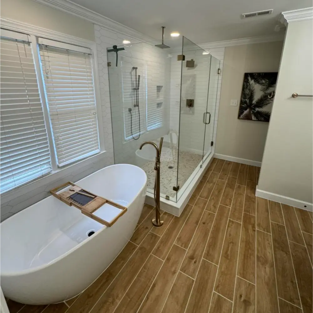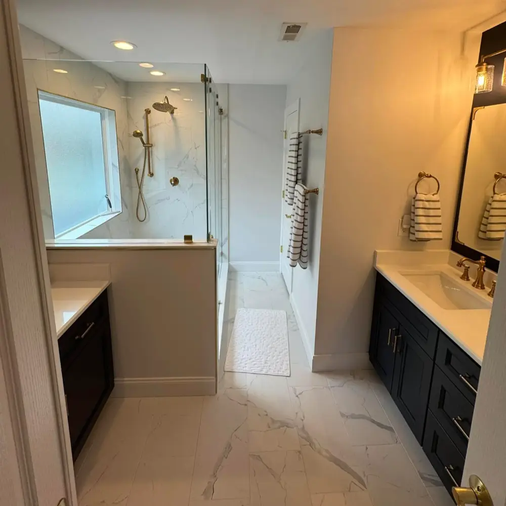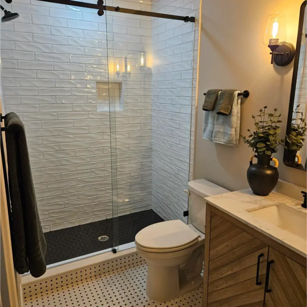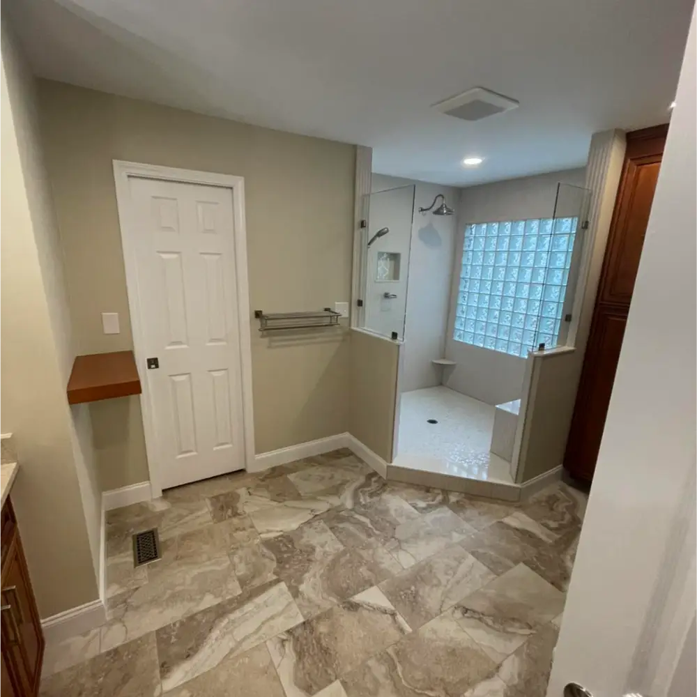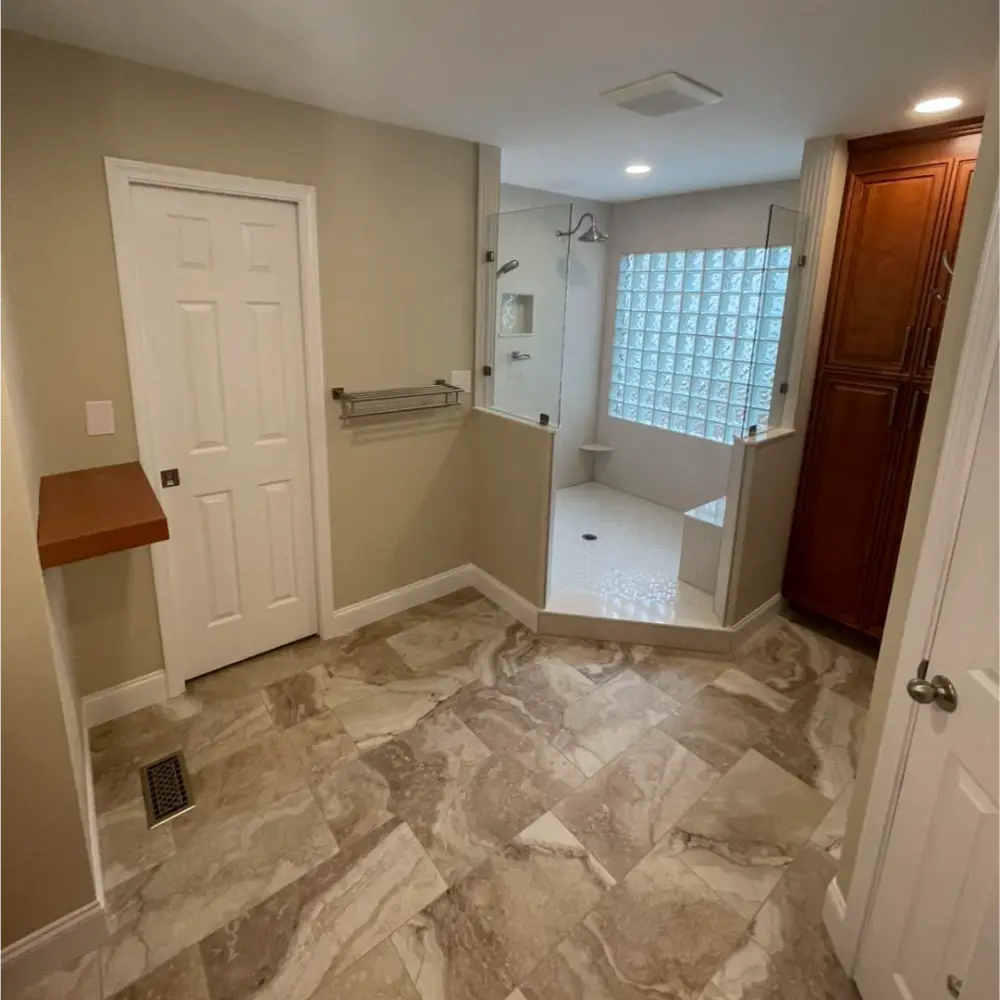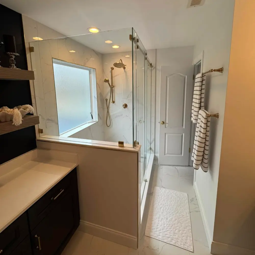 We convert tubs to showers, build custom tile showers, install glass enclosures, and update vanities, flooring, and lighting to create clean, modern spaces.