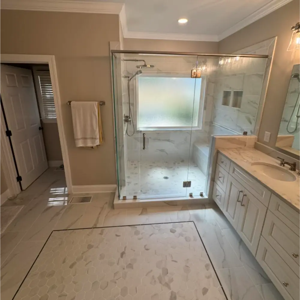 At Branch Home Improvement, we remodel master bathrooms, guest baths, and small hallway bathrooms for homeowners across Holly Springs, Cary, Apex, and the surrounding area.